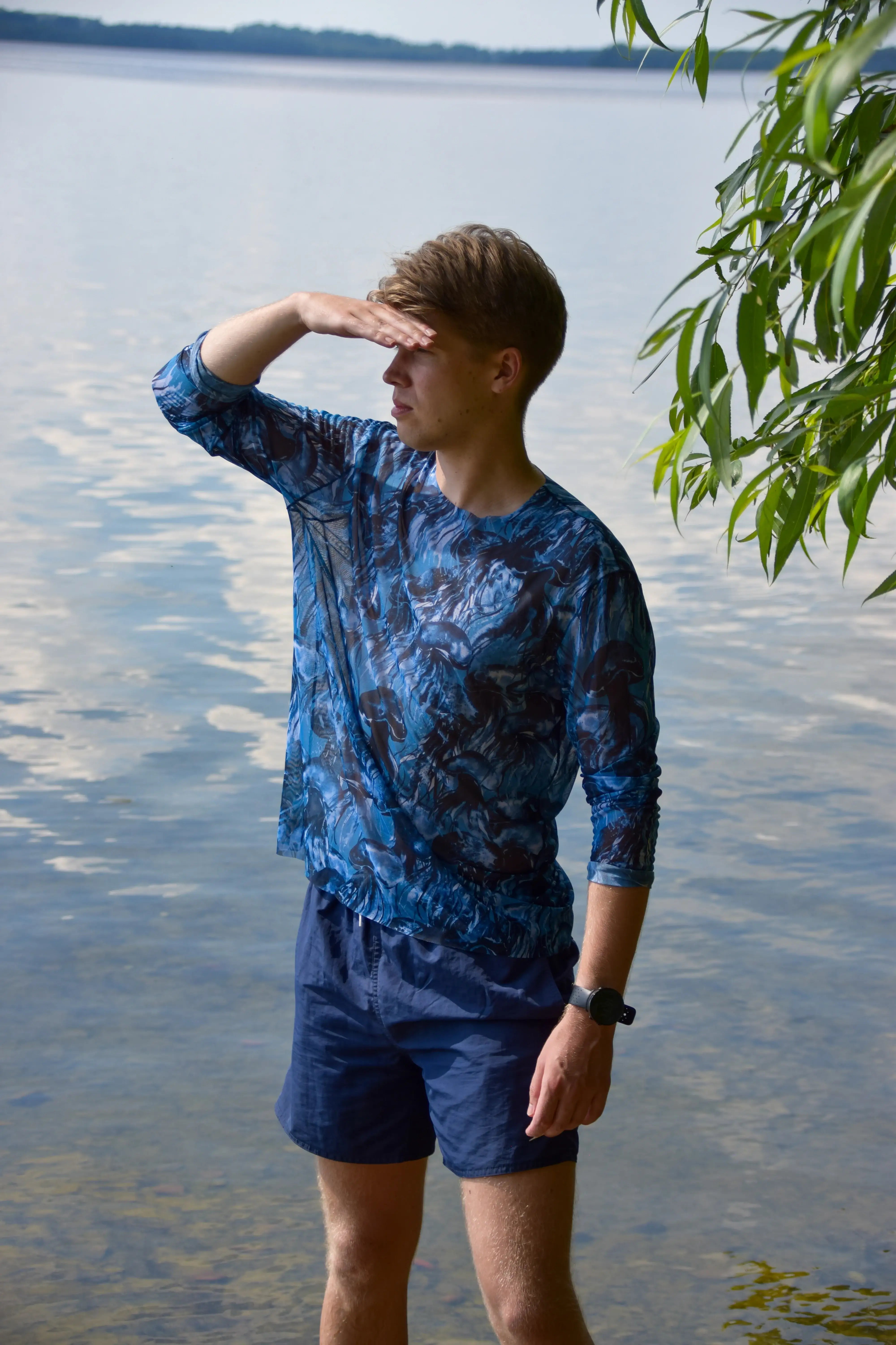 Smarttanin läpiruskettava pitkähihainen miesten paita on ommeltu erittäin ohuesta, joustavasta materiaalista. Tällainen kangas KORVAA AURINKOSUOJAVOITEEN, ja sen kanssa voi ottaa aurinkoa miellyttävästi ja turvallisesti niin kadulla kävellessä, urheillessa kuin rannalla paistatellessakin. Paidalla on mukava myös uida, ja se kuivuu vedessä käymisen jälkeen muutamassa minuutissa.