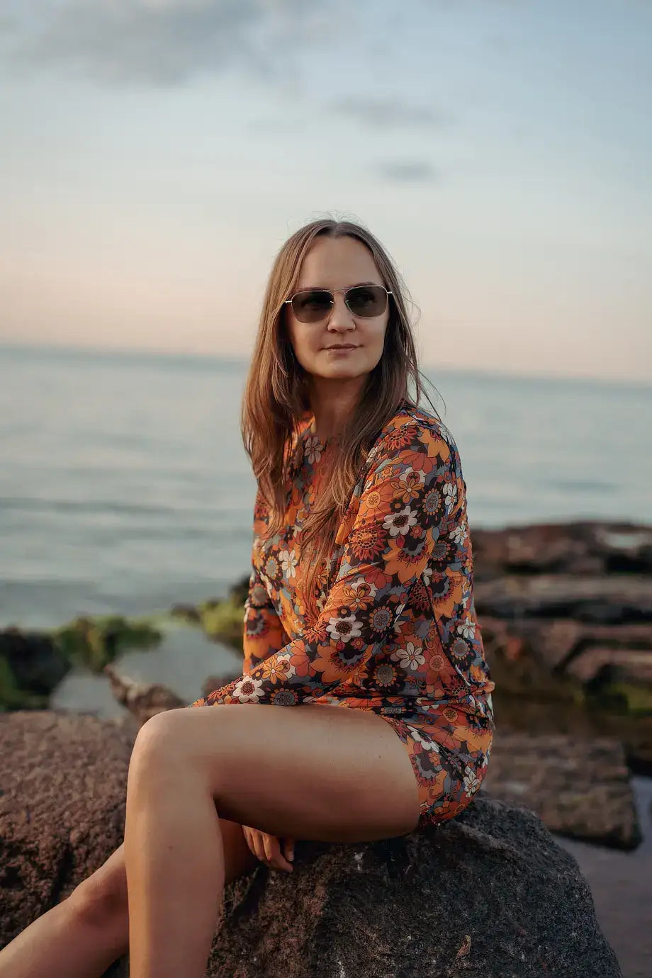Kristel Aaslaid: Kolme naisen karavaanimatka Italiaan antoi meille upean mahdollisuuden kokeilla täysin uudenlaista vaatetta. Tunikaa, jota voi käyttää bikinin päällä ilman pelkoa, että peittäminen jättäisi ikäviä rajoja ihoon. Kangas on mukava, hengittävä ja samalla suojaa liialta auringolta. Yhteistyössä Smarttanin kanssa suunnittelin pienen “kesän rakkaus” -henkisen mekon itse valitsemallani Kristeli Retro -kuosilla.