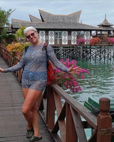 "Käisin Mabuli saarel, Malaisias. Kaasa ostetud uus Smarttani imeõhukesest materjalist läbipäevituv komplekt on kuumal maal suurepärane kehakate🌴☀🌵 Parim riietus põhjamaa inimesele, kes lõunamaa lõõskava päikese kätte satub! Kuna snorgeldades „põlesid" jalgade katmata osad ära, siis tellisin hiljem ka pikad püksid! Väga hästi sobib komplekt ka rannamängudeks, näiteks võrkpalliks, mida ma armastan mängida siinsamas Eestimaal."