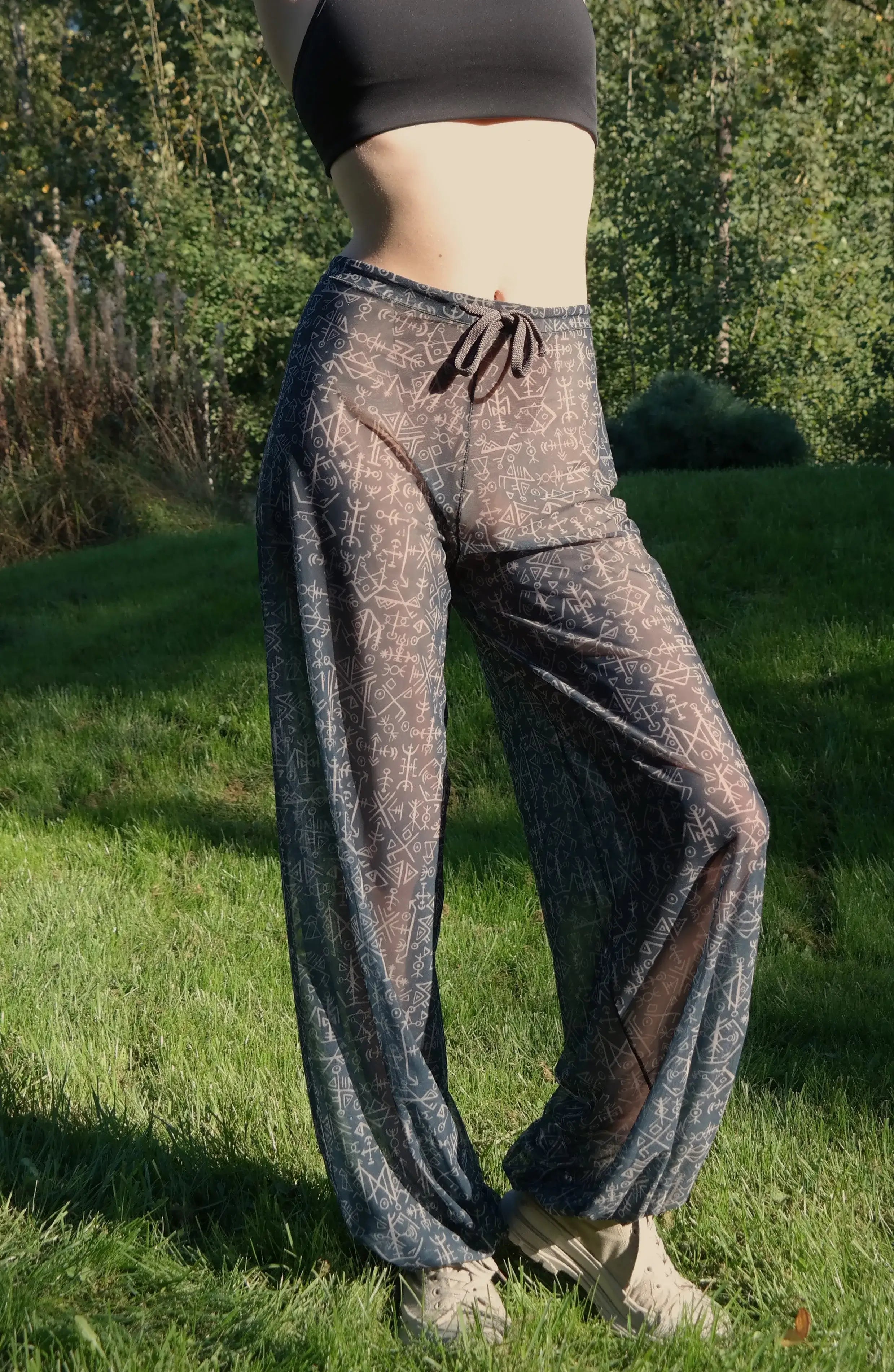 Housujen vyötäröllä ja lahkeiden alareunassa on nauhat. Tämän ansiosta niitä voi käyttää haaremihousuina, eli lahkeet voi kiristää nauhalla yhteen, tai jättää lahkeet vapaasti laskeutuviksi. Jälkimmäinen vaihtoehto sopii erityisen hyvin pidemmille naisille.