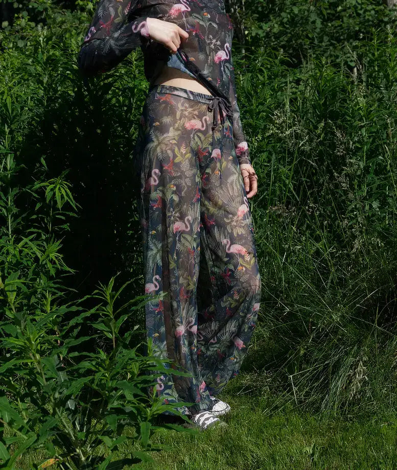 Smarttanin läpiruskettavat pitkät housut on ommeltu erittäin ohuesta ja joustavasta materiaalista. Tämä kangas KORVAA AURINKOVOITEEN ja sen ansiosta voit ruskettua mukavasti ja turvallisesti kävellessä, urheillessa tai rannalla rentoutuessa. Housuissa on mukava myös uida, ja ne kuivuvat vedessä käynnin jälkeen vain muutamassa minuutissa. Kun yhdistät housuihin saman kuosin pitkähihainen paita, saat kauniin, koko vartalon peittävän asukokonaisuuden.