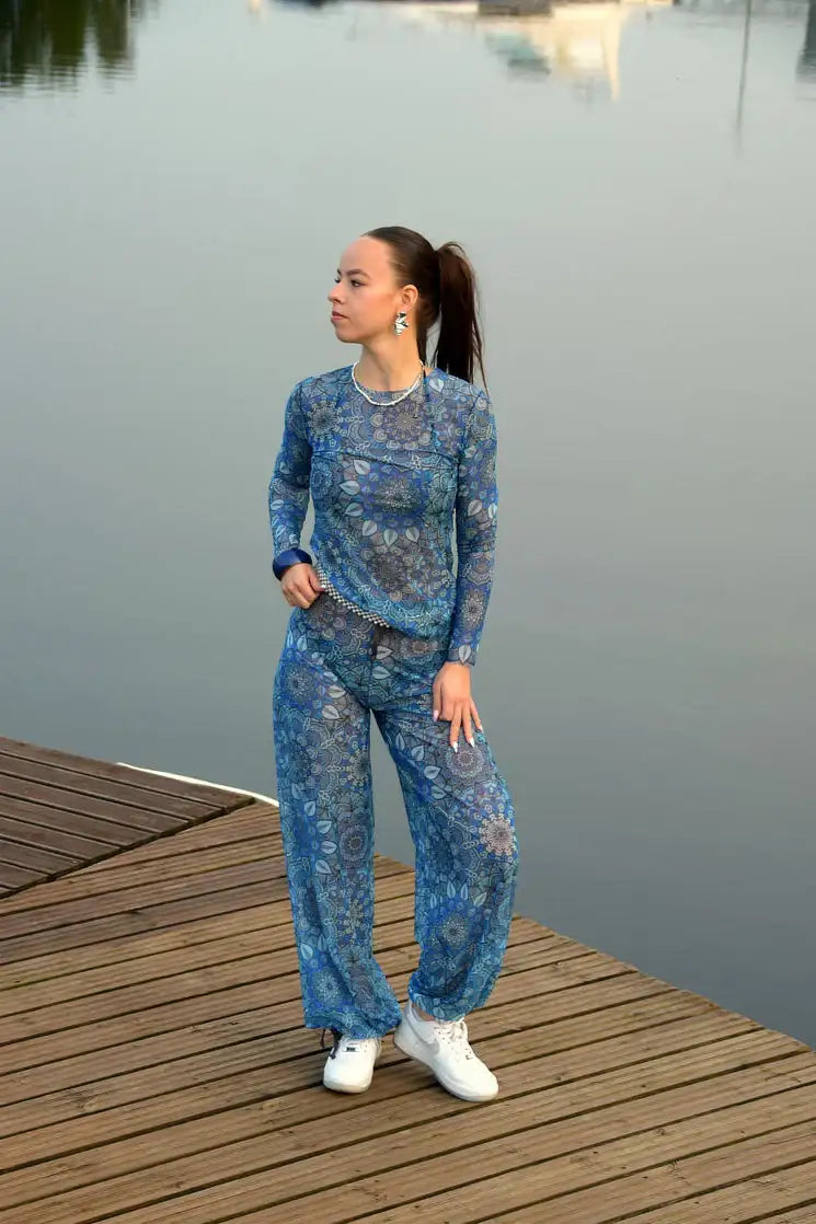 Smarttanin läpiruskettavat pitkät housut on valmistettu uskomattoman ohuesta ja joustavasta materiaalista. Tällainen kangas KORVAA AURINKOSUOJAVOITEEN, ja sen ansiosta voit nauttia turvallisesta auringonotosta niin kadulla kävellessä, urheillessa kuin rannalla rentoutuessakin. Housut sopivat myös uimiseen, ja ne kuivuvat vedessä käymisen jälkeen vain muutamassa minuutissa. Jos valitset pitkien housujen lisäksi samakuvioisen pitkähihaisen paidan, saat kauniin urheilullisen setin.